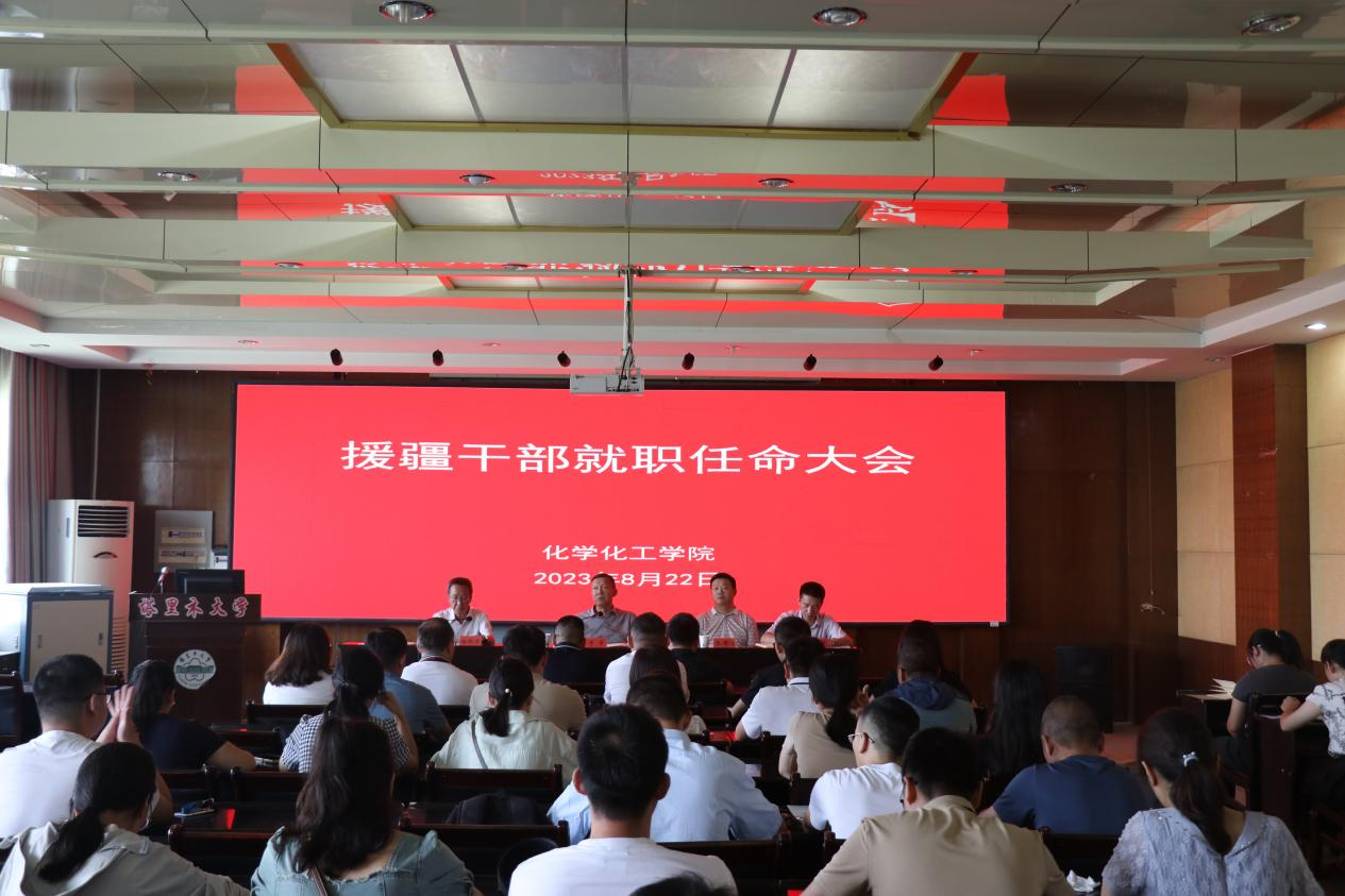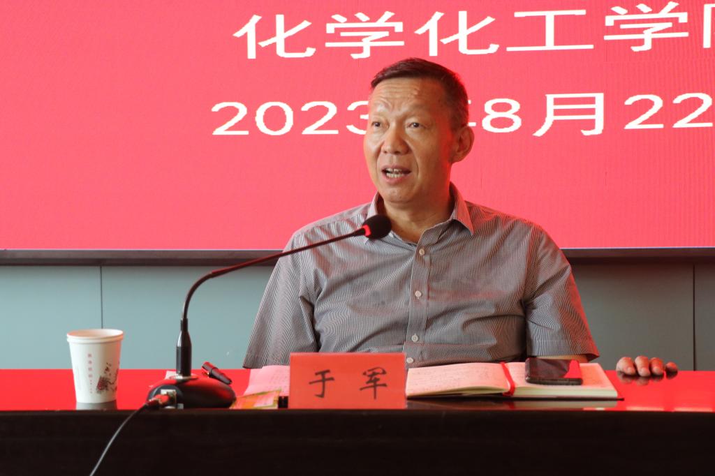 8月22日上午,化学化工学院召开援疆干部就职任命大会。党委常委、副校长于军出席并讲话。会议由学院党委书记白红进主持。