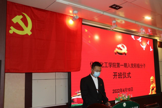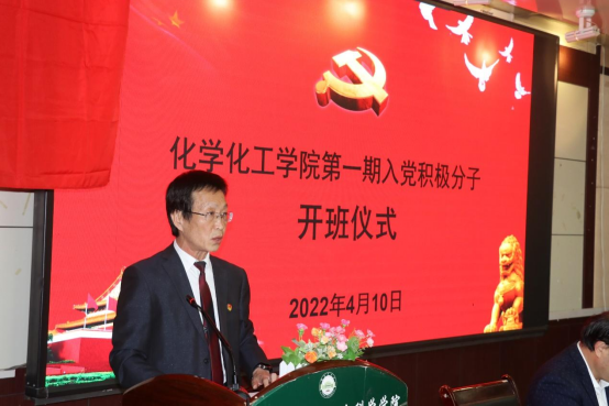 开班仪式在庄严的国歌声中拉开序幕。学院党委副书记马祥宣读了学院党委关于同意2022年上半年入党积极分子的批复决定,党委书记白红进代表学院党委祝贺大家成为入党积极分子,化学工程与工艺2020级3班张一飞同学代表全体学员作了表态发言。