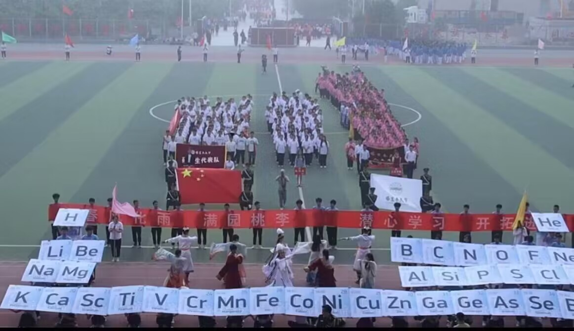 开幕式上,化学化工学院学生代表方队身着渐变蓝衣,步伐矫健,如颗颗蓝色繁星点缀在盎然的暮春,他们相亲相爱,能歌善舞,潜心钻研,开拓进取。舒缓文雅的音乐旋律响起,化工方阵学生激情饱满,舞姿飘逸婀娜,刚柔并济,用侠骨柔情以舞会友,展青春之精神,扬化工之风采;由36名学子拼组的“元素周期表”图形跃然展现,别出心裁,耳目一新,用活力浇灌青春的原野,用智慧书写梦想的华章。