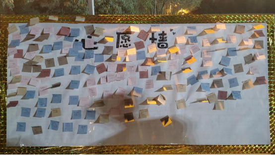 “——夏天都来了,你为什么还不来?——快来把梦想留在心愿墙上!”在舞会入口,工作人员热情邀请前来观赏舞会的师生,鼓励并引导师生们用便利贴写下自己的梦想并粘贴在心愿墙上,便利贴上写满了梦想“星光不问赶路人,时光不负有心人,教资我来了”、“阳光万里,一研为定,上岸!”、“我们相遇在夏天,而夏天从未结束,祝愿大四学长学姐毕业快乐!”……