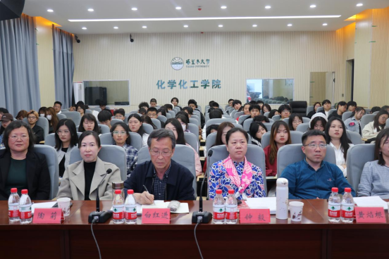 东华大学化学与化工学院院长武培怡,党委副书记陶莉,党委委员、副院长黄焰根,以及两院相关科室、系室老师们,学生党员代表、化学(师范类)专业学生代表参加了此次