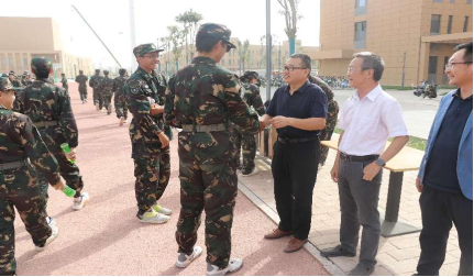 学院领导与新生们亲切交谈,了解他们的军训情况,鼓励他们秉承胡杨精神,锤炼意志品质。白红进对教官、医护人员等的无私奉献表示了由衷赞许,对参训同学良好的精神面貌给予充分肯定。