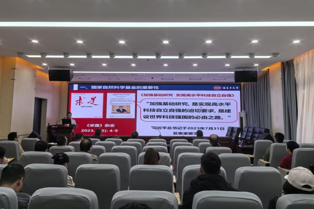 首先,学院党委书记白红进发表动员讲话,他阐述了申报国家自然科学基金项目,对促进个人科研能力及学院整体科研实力的提升有重要意义,鼓励符合条件的教师积极申报,学院会全力助力老师的申报工作。