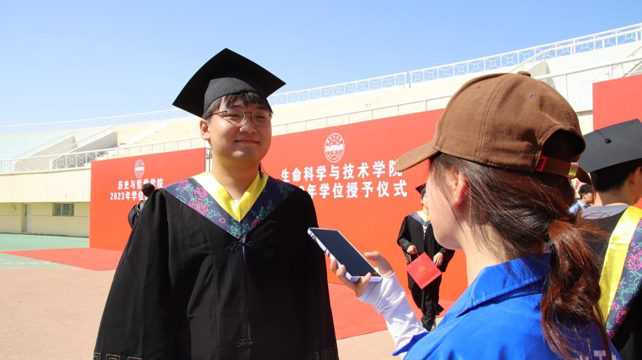 2023届优秀毕业生代表、化学工程与工业生物工程2019级学生刘立学说:“‘艰苦奋斗、自强不息、扎根边疆、甘于奉献’的胡杨精神始终激励着我继续前进。不悔梦归处,只恨太匆匆,虽有不舍,但要向前,祝福我们的母校明天越来越好,再创辉煌!祝福我们老师工作顺利、桃李芬芳!最后,祝福我们2023届毕业生径行直遂、青云万里、前途顺意,毕业快乐。”