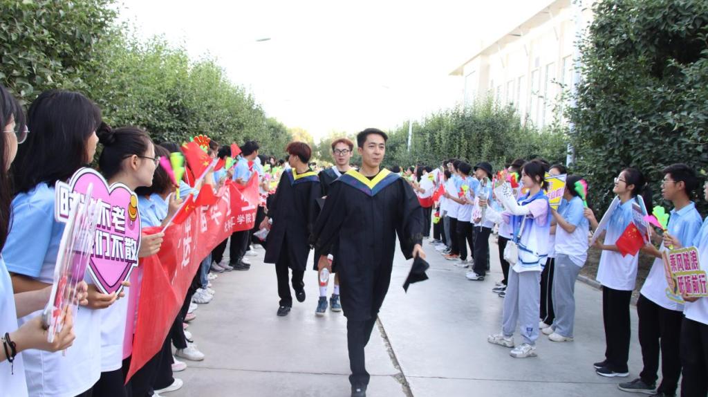 “祝学长学姐们毕业快乐!前途似锦!”热情的学弟学妹夹道列队形成“成才通道”,挥动着祝福标语并高声呼喊着。化学化工学院毕业生身着崭新整齐的学位服,昂首阔步,脸庞洋溢着自信,幸福的步入仪式会场。党委常委、副校长于军莅临化学化工学院学位授予仪式现场。
