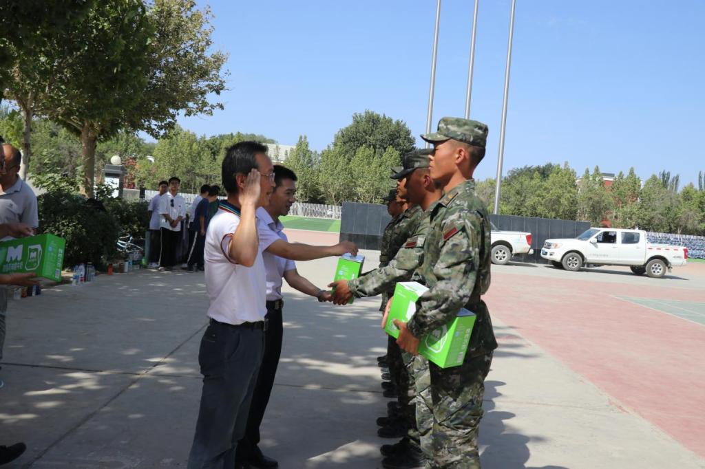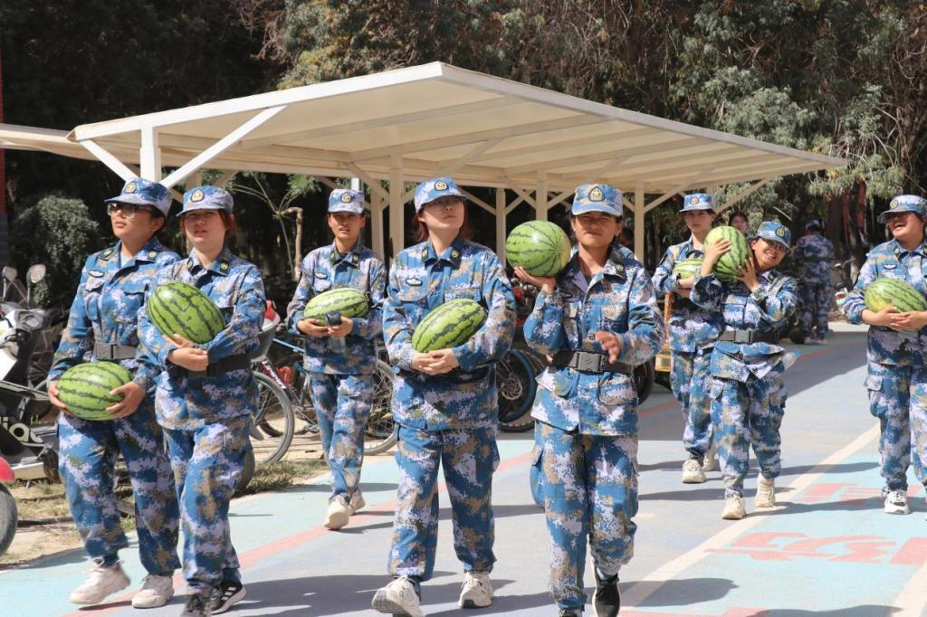 白红进首先代表学院全体师生向承训教官及医护人员的工作表示感谢,向全体参训的同学们表示亲切的问候,并对同学们高昂的军训热情和端正的训练态度表示高度的肯定和赞扬。他表示,军训既是大学教育的必修课,同时也是磨砺意志、增强体魄的关键一课。随后,各位领导为承训教官和参训学生分发了牛奶、饮品、西瓜,传递着来自化工院这个大家庭的问候与温暖。