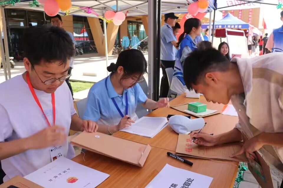 学院领导在迎新点进行迎新指导工作,并对新生及家长送去暖心关怀,同时每个专业也都有对应的老师负责,并有学长、学姐和学生会同学协助老师,还专门有导示牌引导新生报到,方便了各位学生和家长能尽快完成报到手续的办理。