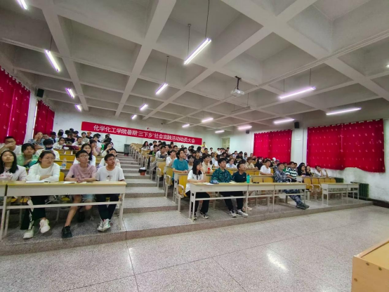 为进一步提升大学生综合素质,加强青年学生思想政治引领,帮助广大青年结合实际参与到“三下乡”社会实践的“大思政课”中来,5月18日晚,化学化工学院于二号教学楼阶教3举行2023年暑期“三下乡”社会实践活动动员大会和经验分享交流会,会议由来自35个团支部的150余名学生代表参加。